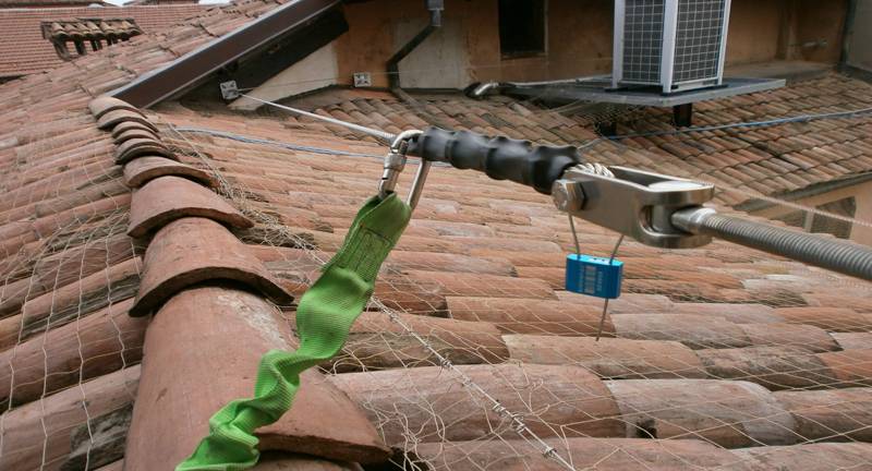 Messa in sicurezza della copertura in vista di lavori di ristrutturazione del tetto e necessità di installare una linea vita a basso impatto visivo.